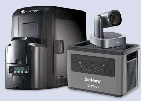 The ISG offers this fully customizable photo ID badging cart from Howard Computers. You can almost any photo ID card printer, a mini PC, an LCD monitor, a keyboard, a mouse and an ID camera to create a fully functional mobile ID station.